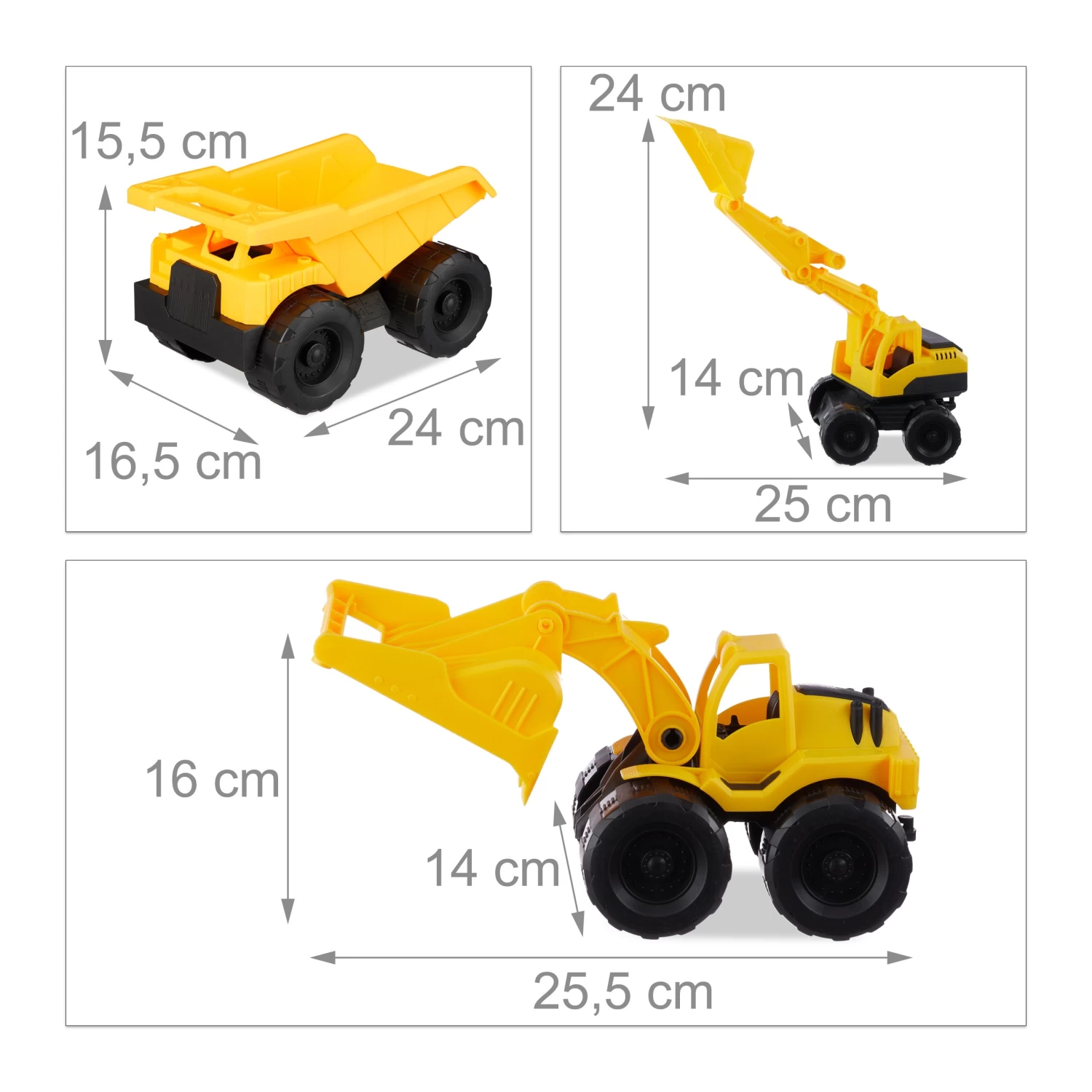 – Maße Schaufelbagger H x B x T: max. ca. 24 x 14 x 25 cm