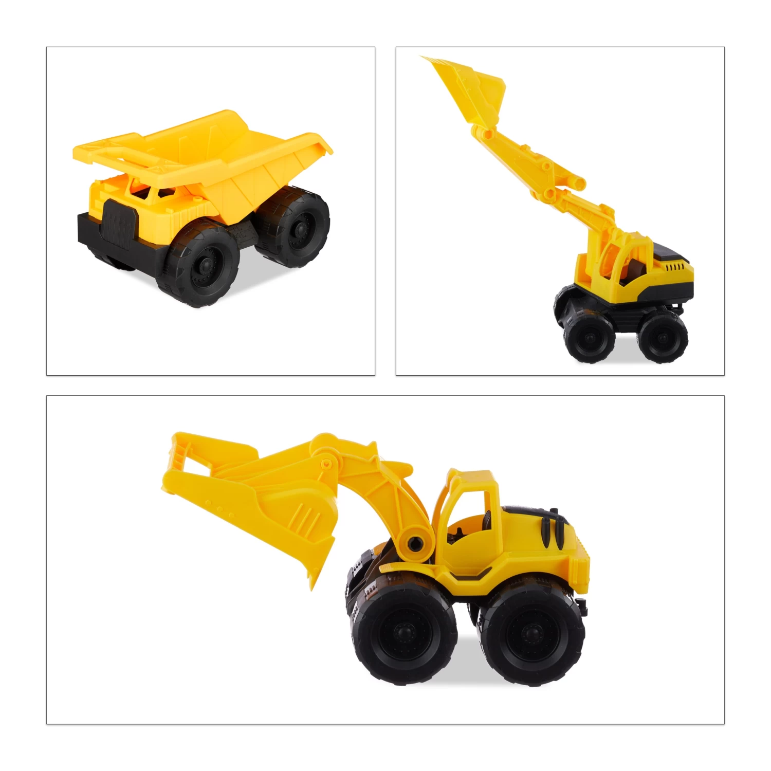 – LKW mit kippbarer Ladefläche, Bagger & Frontlader mit beweglichen Schaufeln und Fahrerhäuschen