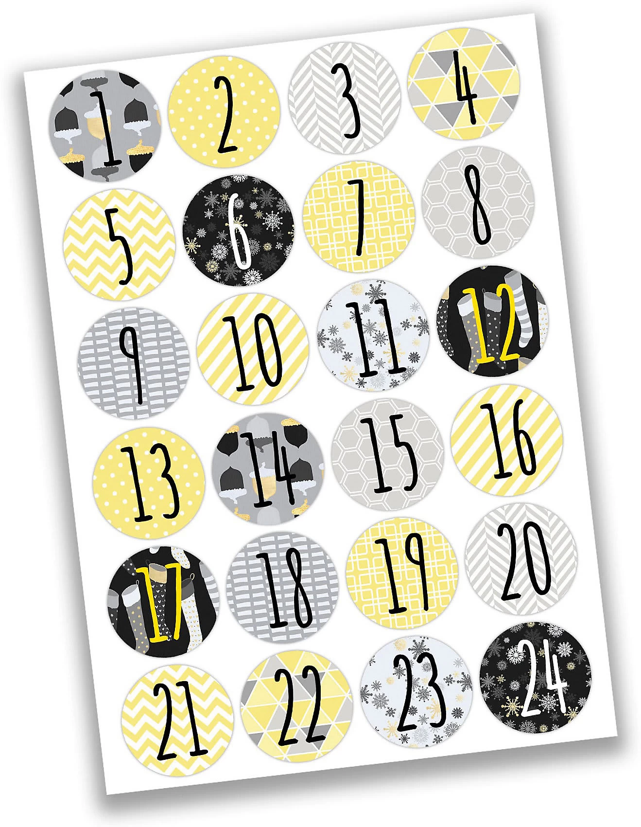 Zum Dekorieren, Basteln und zum Nummerieren von selbstgebastelten Adventskalendern eignen sich diese tollen Zahlenaufkleber. Sie präsentieren sich mit verschiedenen Mustern und werden garantiert zum coolen Hingucker!