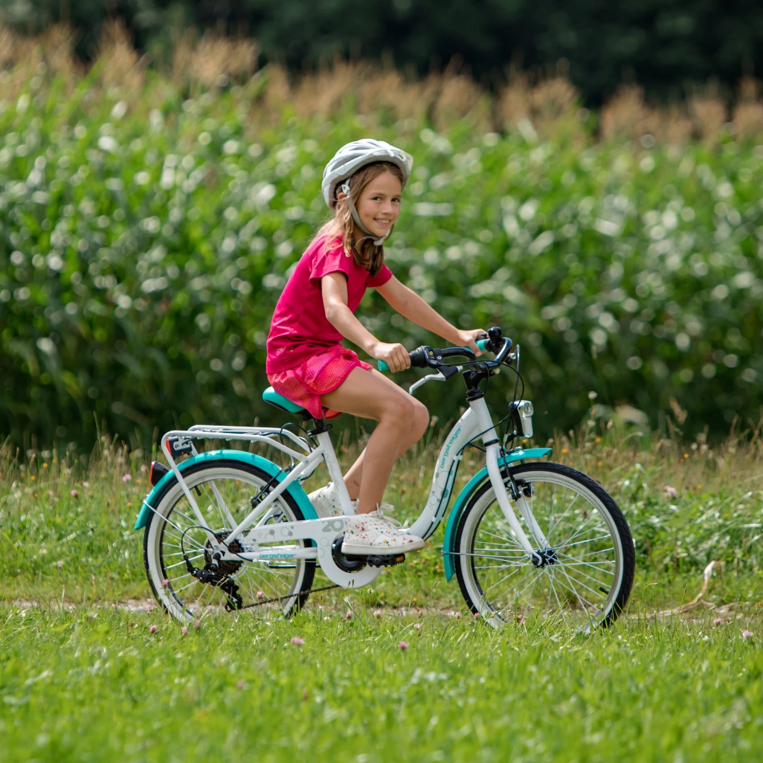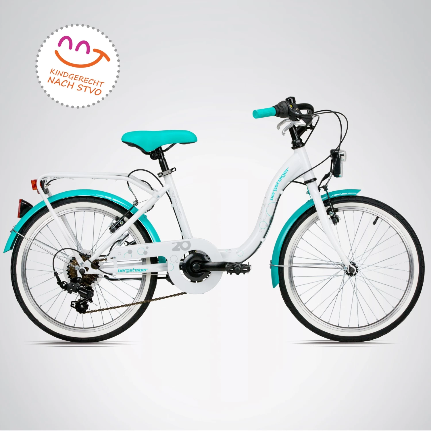 Das wunderschöne Design des Kinderfahrrads Atlantis von Bergsteiger lässt die Herzen kleiner Radfahrer höherschlagen. Besonders die coole Weißwandbereifung ist ein absoluter Hingucker mit hohem Wiedererkennungseffekt. Erhältlich ist das solide Citybike in mehreren schönen Farben für jeden Geschmack. Vorteilhaft ist der tiefe Einstieg, der nicht nur das Aufsteigen sicher macht, sondern auch ein schnelles Absteigen ermöglicht und Mädchen mit langen Röcken ausreichend Beinfreiheit gewährt. Ebenfalls ein Plus ist der bequeme City Lenker.