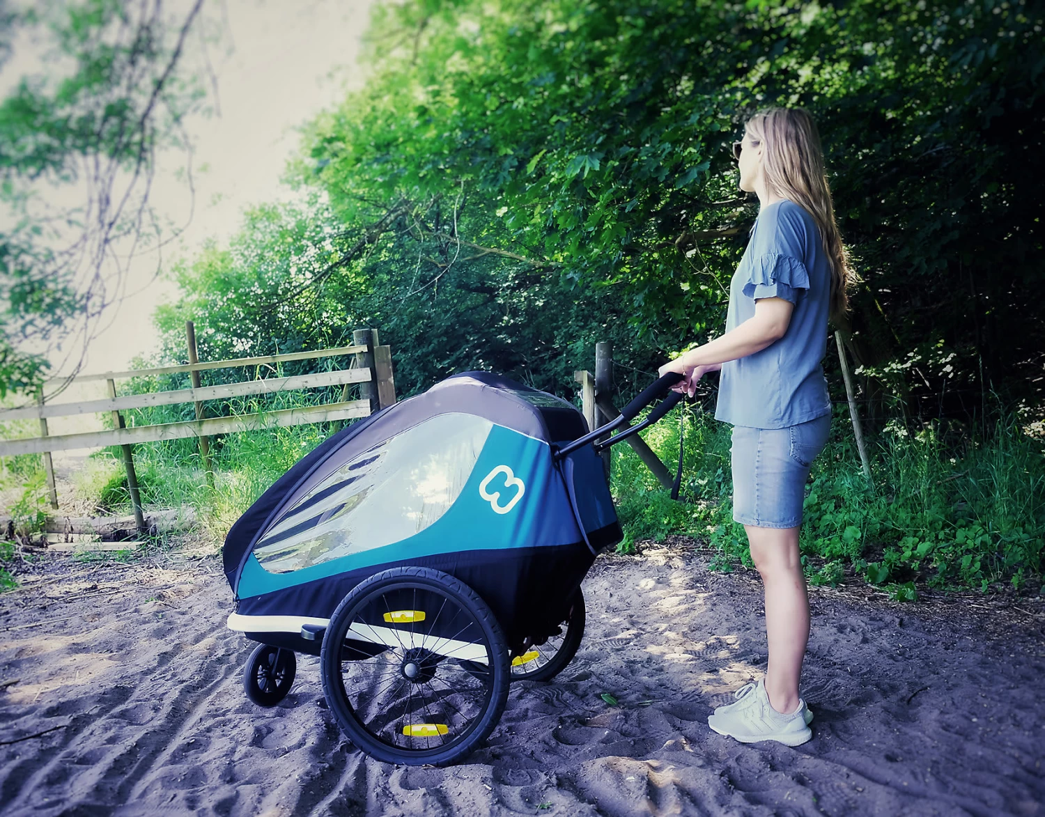 – Fahrraddeichsel und Buggy-Rad inklusive