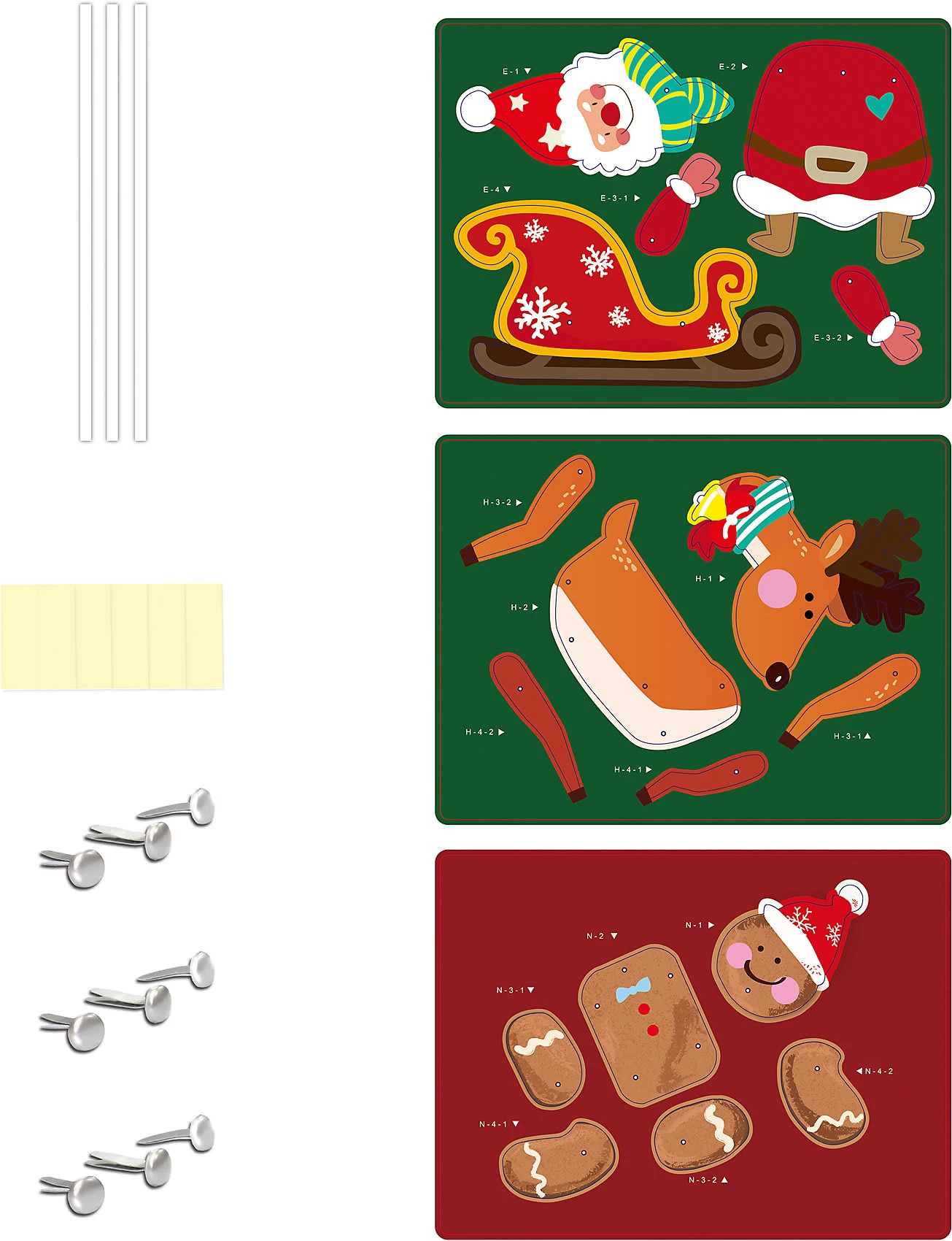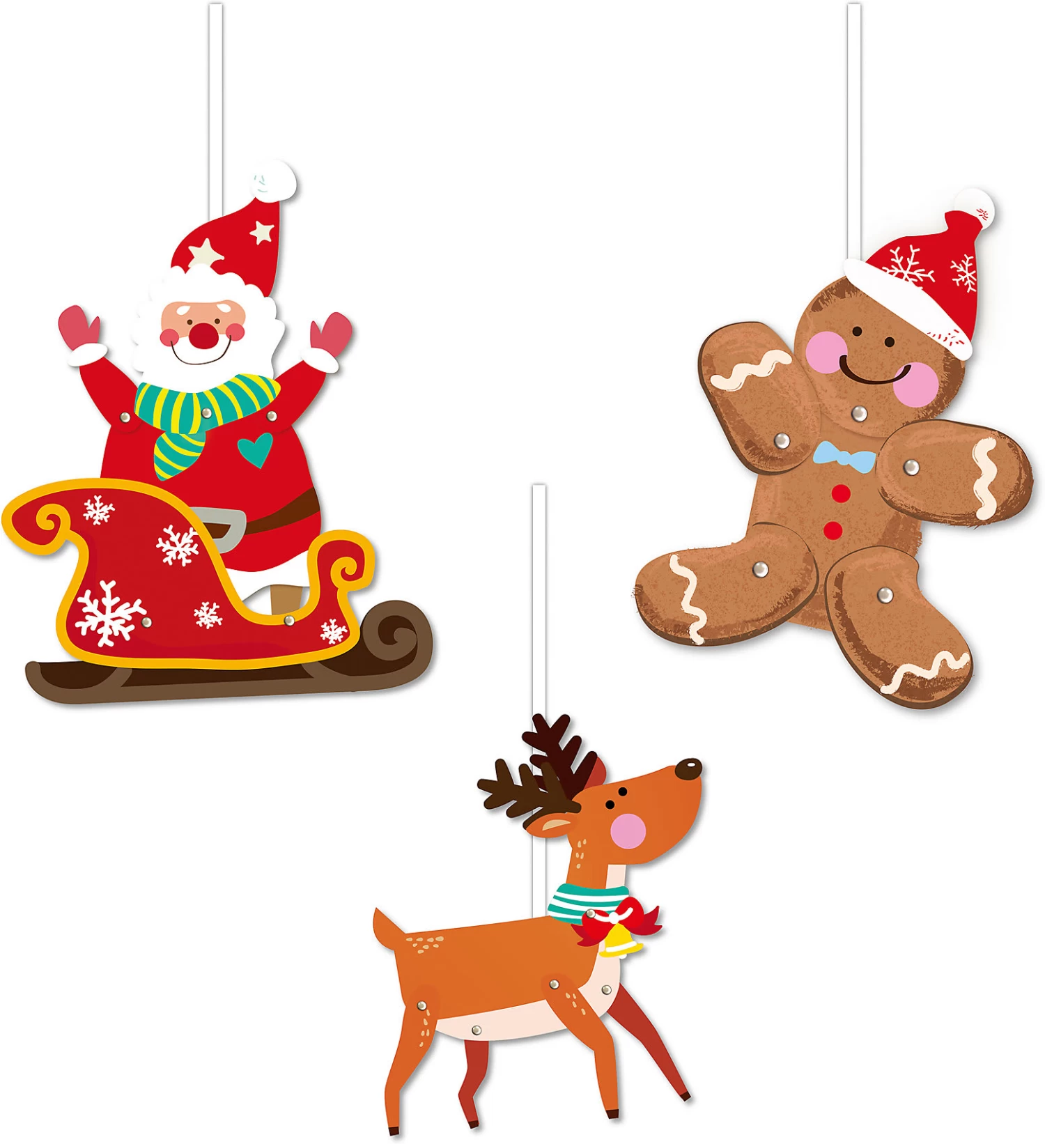 – 3 niedliche Hampelmänner: Weihnachts-, Lebkuchenmann und Rentier