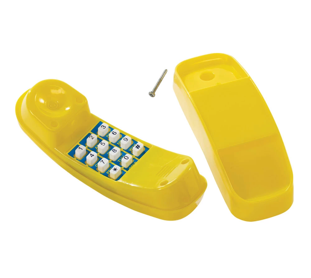 Das ideale Zubehörteil für das Spielhaus oder den Spielturm Ihres KindesDer Phantasie Ihres Kindes werden keine Grenzen gesetzt. Mit dem Spieltelefon von KBT wird das Kinderspielhaus vervollständigt!Das Telefon Ihres Kindes wird nicht mehr still stehen. Bestellungen einfach über das Telefon aufnehmen und die Wünsche der Großeltern erfüllen. Mit Freunden über Neuigkeiten austauschen und Verabredungen vereinbaren.Das wetterfeste Telefon ist einfach an dem Spielturm oder Spielhaus zu befestigen. Ideal für die Anwendung im Outdoorbereich. Das Zubehör kann für alle Kinderspielhäuser und Kinderspieltürme aus Holz genutzt werden.Im Lieferumfang enthalten:
