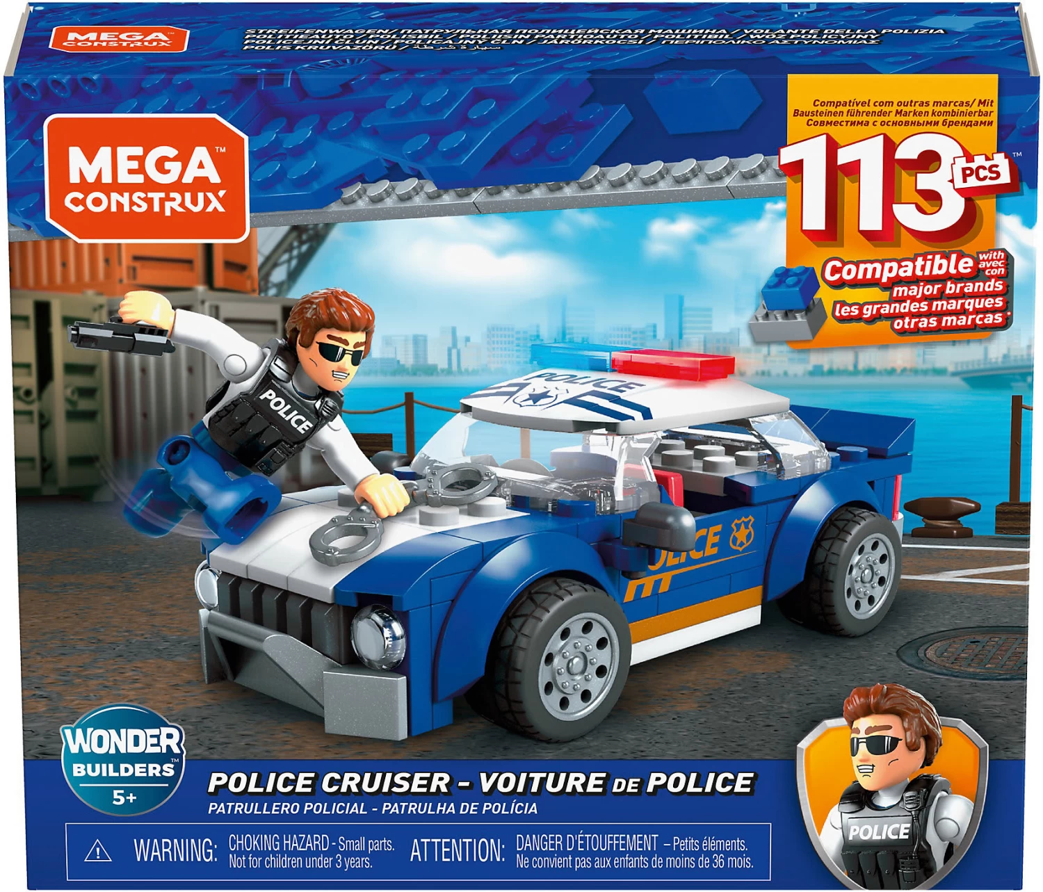 Mit dem Streifenwagen zum Zusammenbauen von Mattel bleibt die Stadt sicher! Das Polizeiauto mit abnehmbaren Dach patrouilliert die Straßen und aus den vielen Bausteinen und Teilen lassen sich die unterschiedlichsten Einsatzorte zusammenstellen. Sobald die roten und blauen Lichter, die beweglichen Räder und die bedruckten Teile angebracht sind, kann der Einsatz für die Polizisten-Actionfigur beginnen. Das Spielen mit dem tollen Auto und Zubehör fördert zudem die Kreativität der Kinder, denn sie können sich viele spannende Geschichten ausdenken und der Fantasie sind keine Grenzen gesetzt.
