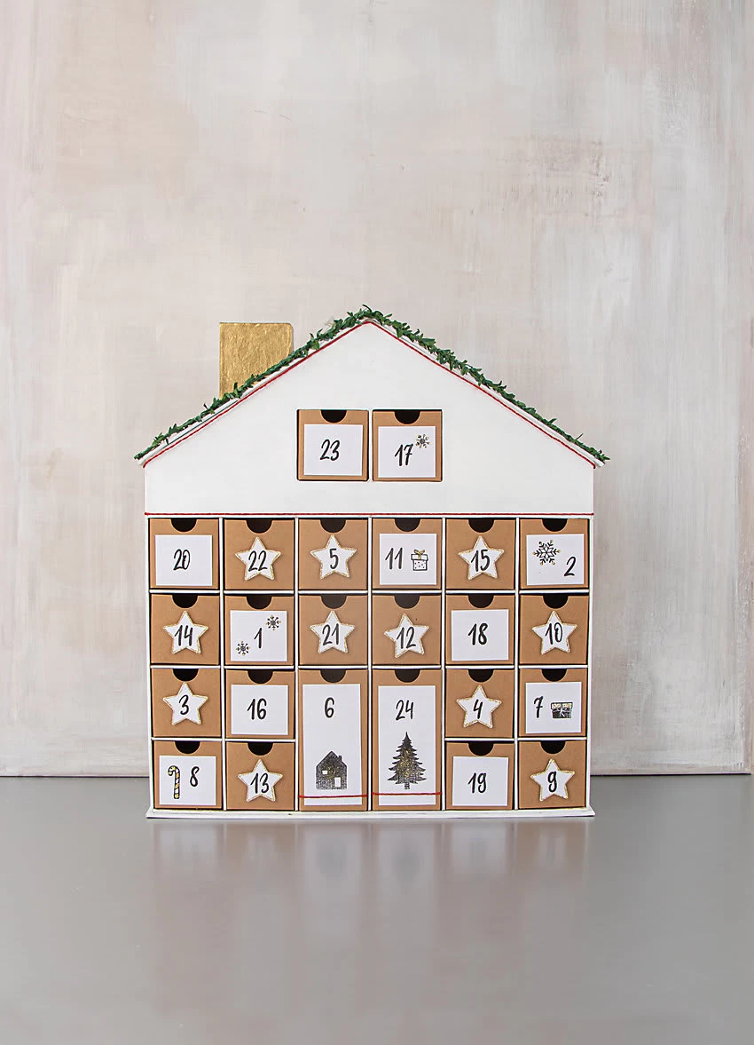 – Pappmaché Adventskalender-Haus