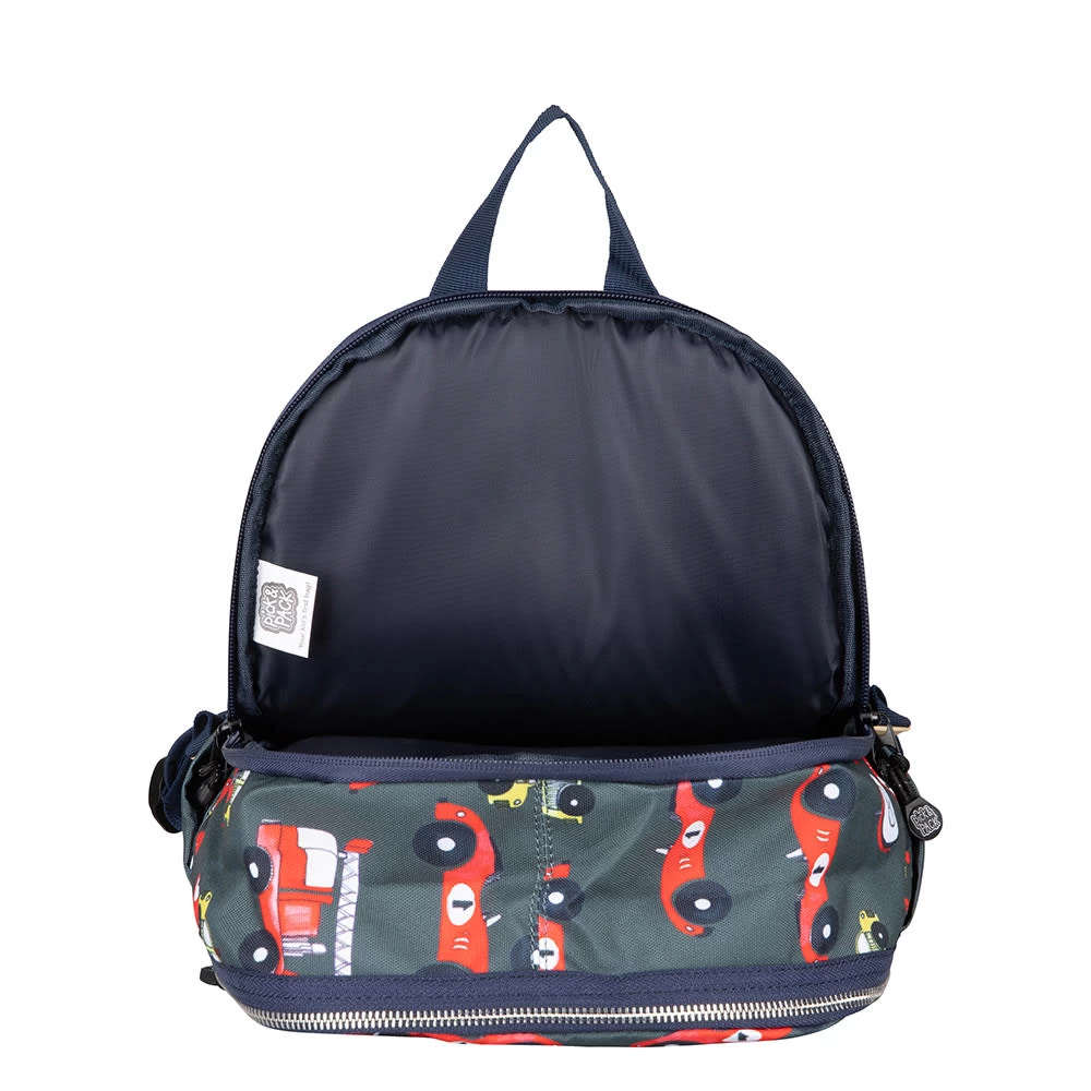 Der Grundschul-Rucksack wurde mit einem ergonomischen Rückenpanel und verstellbaren, reflektierenden sowie gepolsterten Schultergurten entworfen. Aufgeteilt ist er in ein großes Hauptfach und eine Fronttasche. Er lässt sich ganz leicht durch einen Reißverschluss öffnen und schließen. In der Innenseite der Tasche befindet sich ein gepolstertes Reißverschlussfach für ein Tablet oder einen 13 Zoll Laptop sowie ein Anhänger für Schlüssel. Insgesamt ist der Rucksack mit 2 Flaschenhaltern ausgestattet – Innen und einer als äußere Seitentasche. Geeignet ist er ab einem Alter von 5-6 Jahren. Hergestellt werden die stylischen Rucksäcke mit recycelten Wasserflaschen.