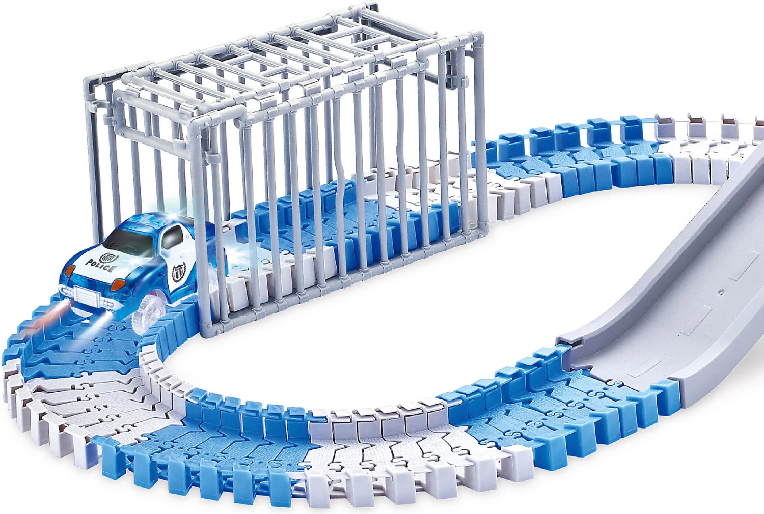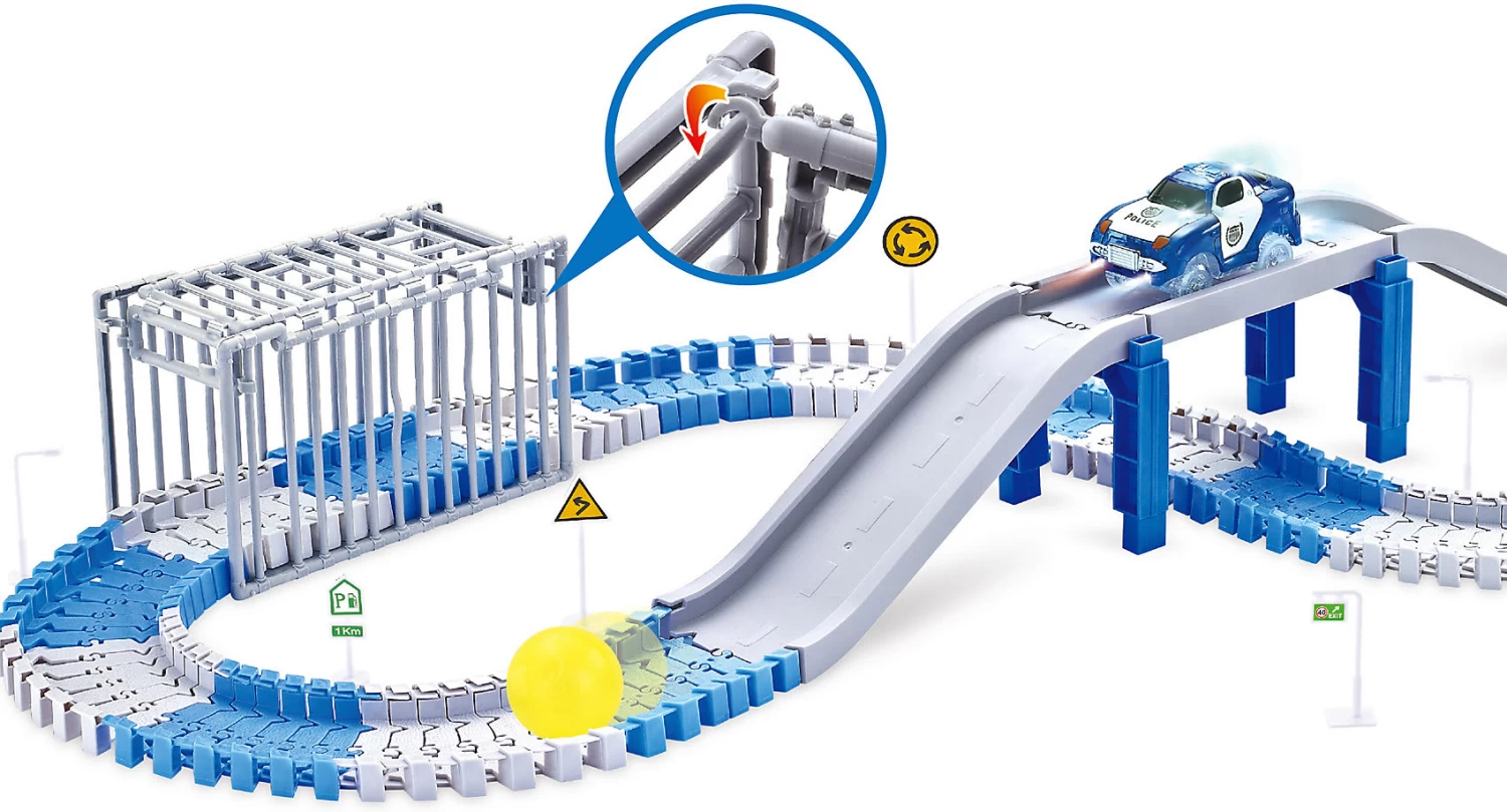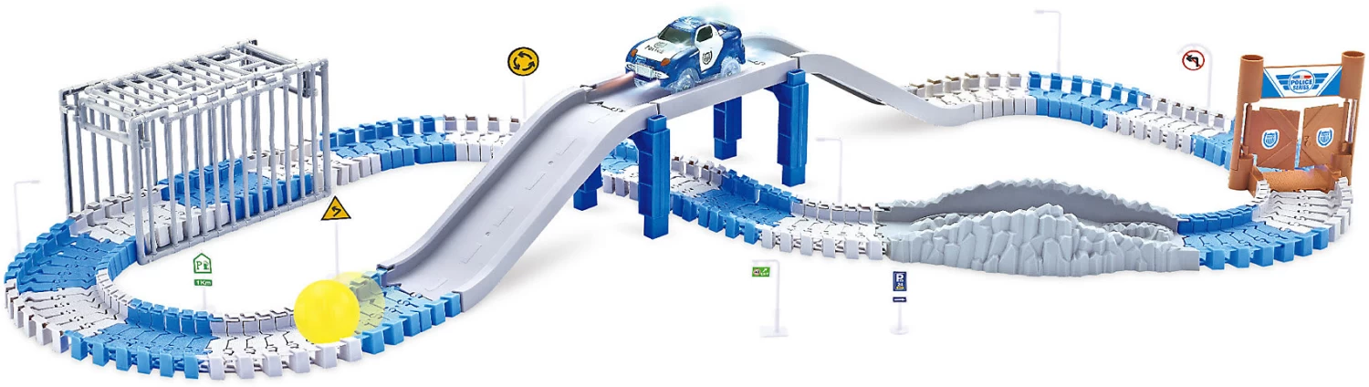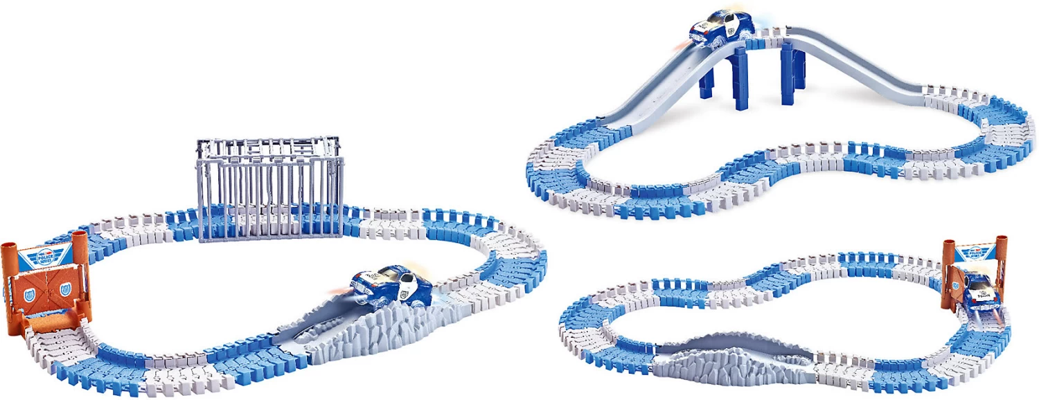 Die pfiffige Rennstrecke für kleinen Polizisten lässt sich nach eigenen Idee gestalten, ist