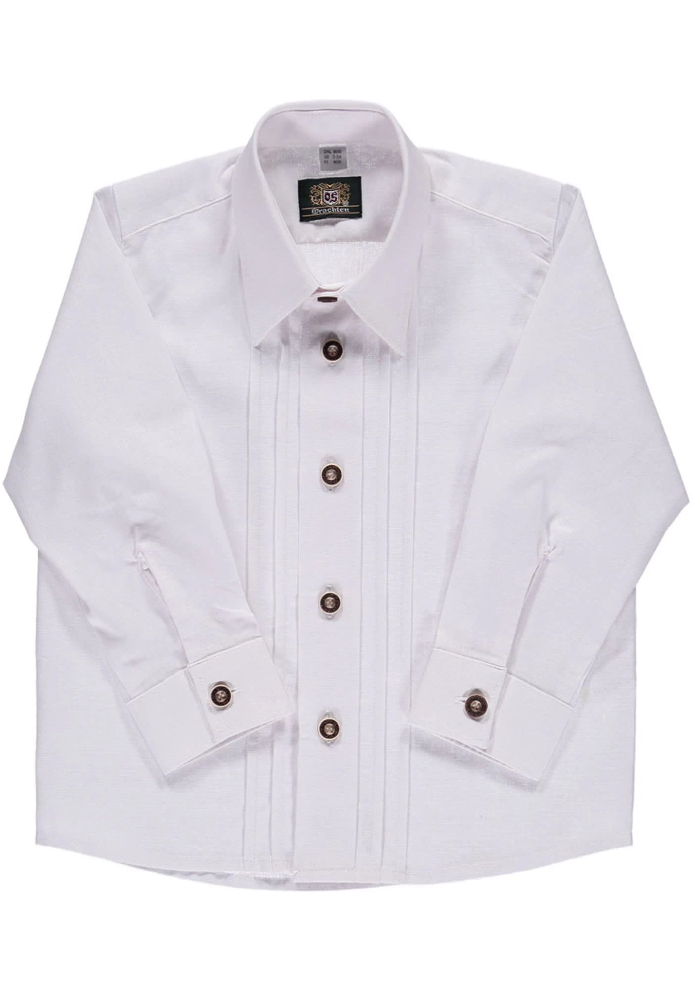 Ganz dezent spielt dieses weiße Hemd mit dem Thema Trachtenmode. Die feinen Biesen entlang der Knopfleiste wirken festlich, Knöpfe in Hirschhornoptik betonen zudem die Knopfleiste. Kombinieren Sie das Hemd zu Lederhose und Janker, zur Jeans oder zum klassischen Anzug – es macht immer eine gute Figur. Typisch OS-Trachten ist das hochwertige Material: reine, schadstoffgeprüfte Baumwolle.