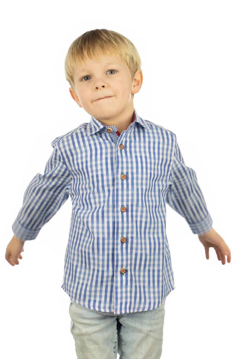 Besonders pflegeleicht sind diese Karo-Hemden für kleine Trachtenfans, denn die Baumwollmischung ist nach der Wäsche auch ohne Bügeln glatt. Die vier frischen Karos sind an Innenkragen und Manschetten liebevoll mit Farbkontrasten ausgestaltet. Und der modische Haifischkragen sieht auch bei den Kleinsten gut aus. Von Größe 74 bis 182 vom Spezialisten OS Trachten gefertigt.