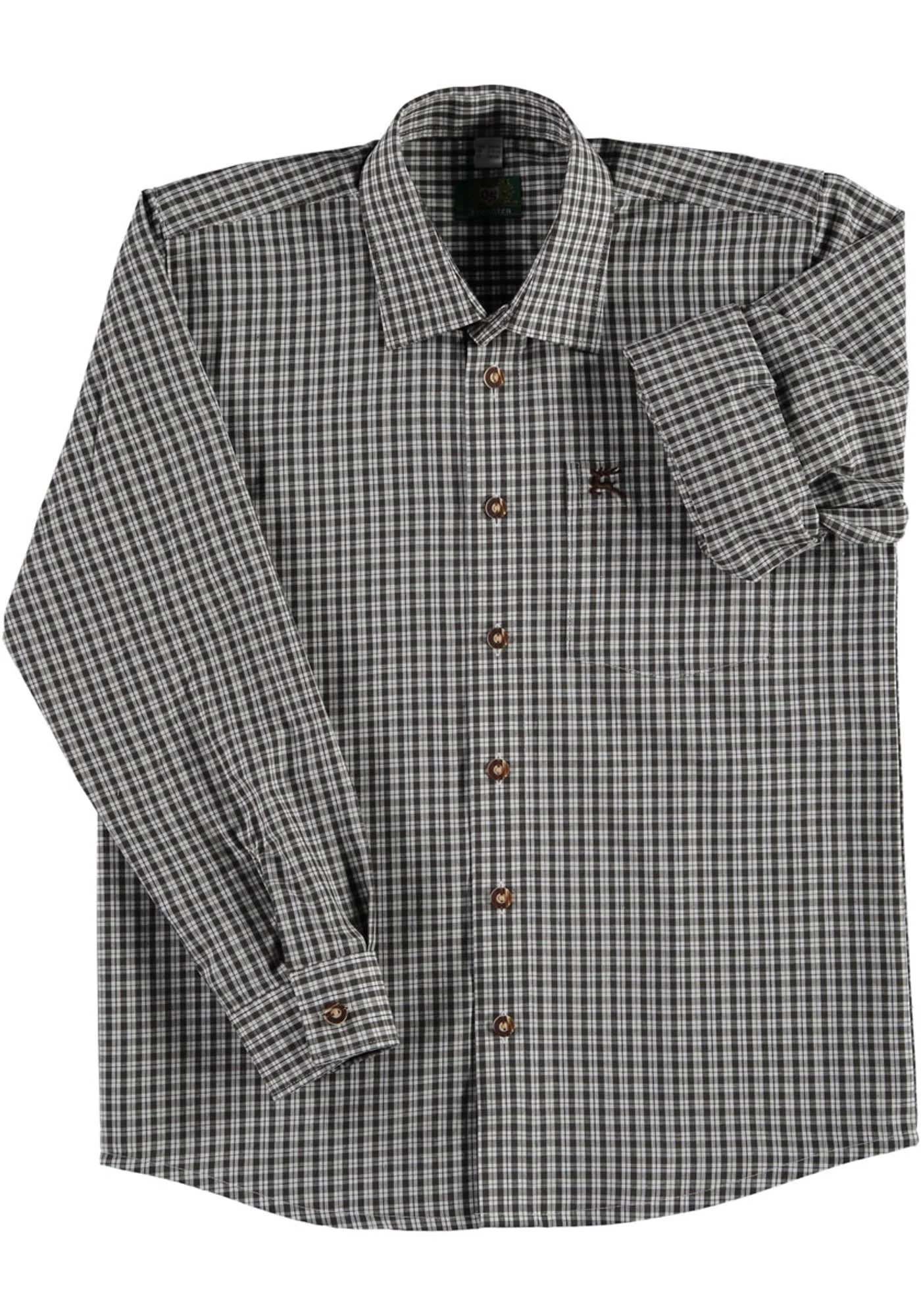 Zur Lederhose und zur Jeans passt dieses Trachtenhemd für Kinder. Die zweifarbigen Karokombinationen sehen frisch aus – und machen gute Laune. Aus pflegeleichtem Mischgewebe mit 60 % Baumwolle, mit allen Eigenschaften, die ein echtes Trachtenhemd benötigt: Knöpfe in Hirschhorn-Optik und Krempelärmel, die mit einer Lasche festgehalten werden. Und in die kleine Brusttasche mit Stickerei passen alle Schätze, die der Nachwuchs auf der Bergtour findet.